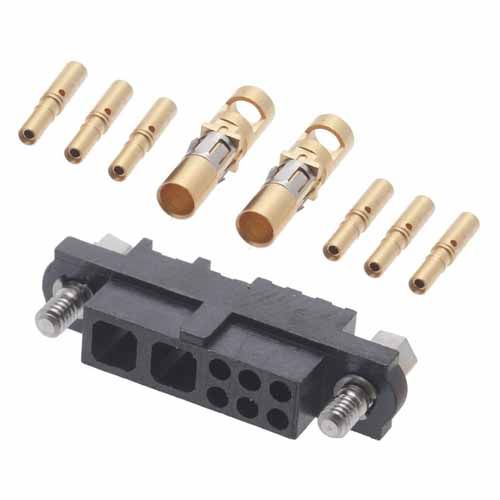 Datamate Mix-Tek Female Cable Housing, Hexagonal slotted floating jackscrews, cavities for 2 x Power or Coax contacts and 6 x Signal contacts
