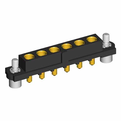 Datamate Mix-Tek Female Vertical Throughboard Connector, Reverse fix jackscrews + 3.5mm board mount, no signal contacts, 6 x 3.5mm Throughboard Power contacts