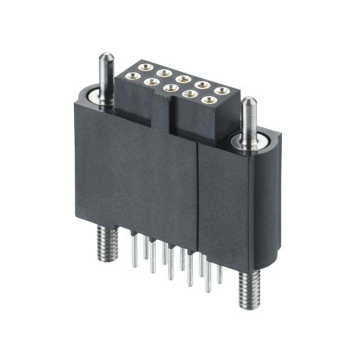 Datamate J-Tek DIL Female Vertical 3mm Throughboard Connector, gold clip + tin shell, guide pin with 5mm board mount jackscrews, 5+5 contacts
