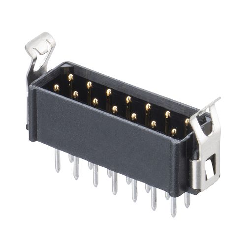 Datamate L-Tek DIL Male Vertical 3mm Throughboard Connector, latched, selective gold + tin, 7+7 contacts