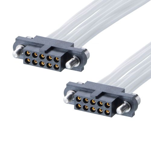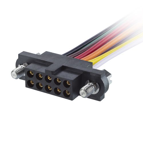 Datamate J-Tek T-Contact Cable Assembly, Female Single-Ended, with floating hex socket jackscrews, multi-color 22 AWG cable, 150mm long, 4+4 contacts