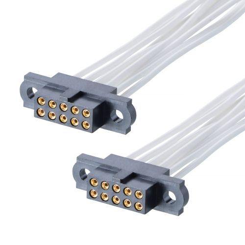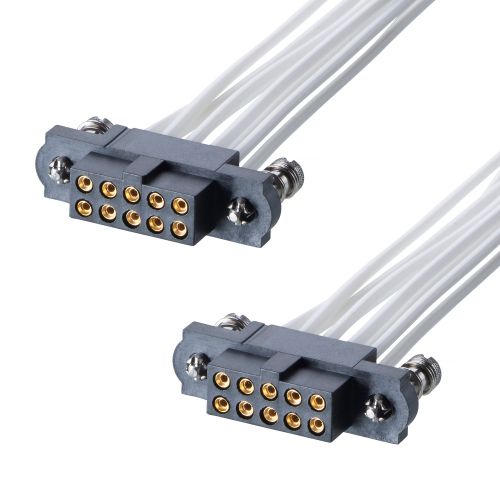 Datamate J-Tek Cable Assembly, Female-to-Female, with floating hex socket jackscrews, white 26 AWG cable, 300mm long, 8+8 contacts