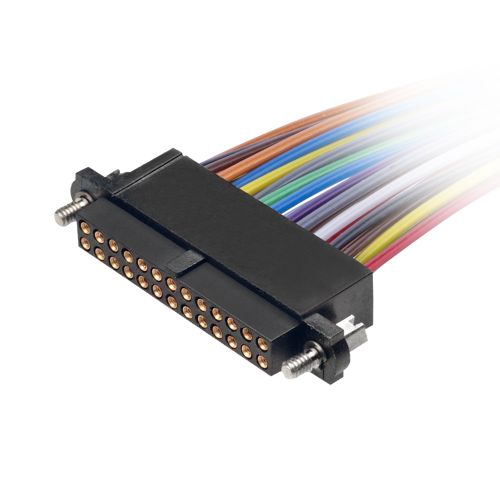 Datamate J-Tek Cable Assembly, Female Single-Ended, backpotted with 5mm potting wall, floating hex socket jackscrews, multi-color 24 AWG cable, 450mm long, 7+7 contacts
