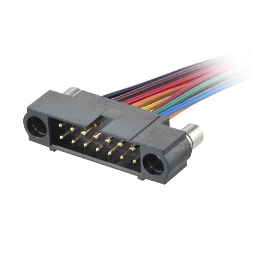 Datamate J-Tek Cable Assembly, Male Single-Ended, internally threaded jackscrews, multi-color 24 AWG cable, 450mm long, 10+10 contacts